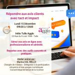 🗓️ Rendez-vous lundi 15 décembre de 9h30 à 12h00 dans les locaux Initio Entreprises 22 rue du 9 juin 1944 à Tulle pour participer à l'atelier "Répondre aux avis clients avec tact et impact" proposé par Élodie Maugret Tulle agglo et animé par Marine Dal Bello Département de la Corrèze